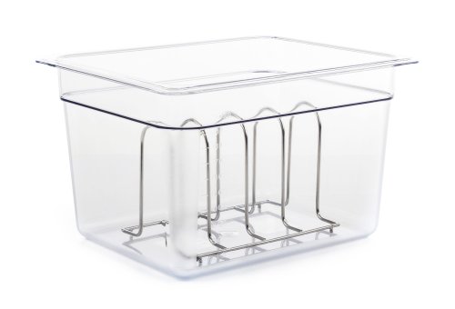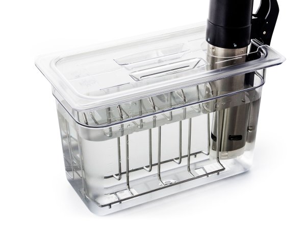 Vyzkoušejte praktický doplněk pro sous-vide vaření. 4místný stojan do kontejnerů a nádob pro vaření metodou sous-vide zachová odstup mezi zavakuovanými balíčky s masem a dalšími surovinami.
