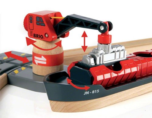 Kontejnerová loď brázdí moře a připlouvá s nákladem do přístavu. Nákladní vláček očekává přeložení nákladu multifunkčním jeřábem. Odsuňte vrata nákladového prostorou a skryjte náklad uvnitř k bezpečnému doručení. Po vyplutí z přístavu nezapomeňte otevřít most, aby mohla loď proplout kolem trati. Vláček je vybaven klasickými magnetickými spojkami BRIO a lze k němu připojit další vagóny. Sada BRIO World je vyrobena ze dřeva s certifikátem FSC® (FSC-C111262) a vysoce kvalitních plastů. Je vhodná pro děti od 3 let a je ideálním dárkem pro chlapce i dívky. Sada obsahuje: 1x přístavní most, 1x jeřáb, 1x kontejnerová loď, 1x nákladní vlak na baterie, 1x vagon, 2x náklad, 8x kolejnice. Baleno v krabičce. Baterie: 1 x AA, nejsou součástí balení. Rozměry vlakové dráhy: 60 x 51 cm. Rozměry balení: 29,5 x 39 x 12 cm. Věk: 3+