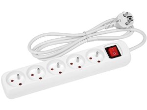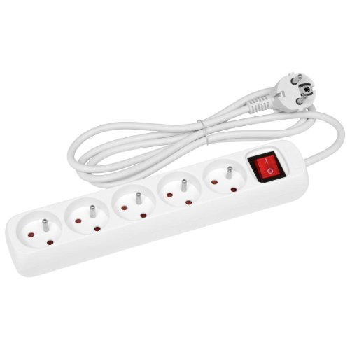 délka: 1,5 m počet zásuvek: 5 vypínač: ano barva: bílá napětí / proud: 250 V / 10 A max. typ izolace: PVC krytí: IP20 max. zátěž: 2500 W certifikace: CE, ROHs