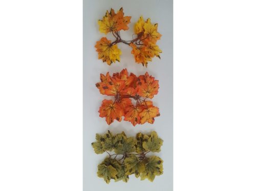 Dekorativní přízdoby ve tvaru javorových listů o velikosti 140 mm. Balení obsahuje 10 kusů v barevném mixu, jednotlivé listy se mohou lišit odstínem nebo provedením.