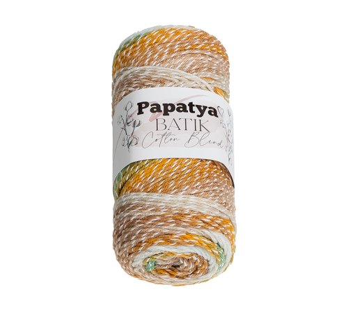 Příze PAPATYA COTTON BLEND batik materiál 70% Akryl, 30% Bavlna 100g / 225 m praní na 30°C jemný postup sušit v sušičce nedoporučujeme žehlit nedoporučujeme doporučená velikost jehlic č. 5 mm háček 3 …