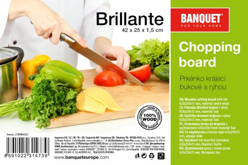 Dřevěné krájecí prkénko BANQUET Brillante s drážkou po obvodu prkénka, kvalitní zpracování.