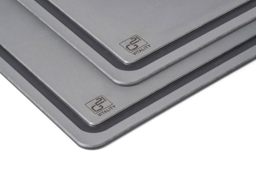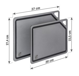 Univerzální prkénka EcoCut z biologicky rozložitelné celulózy spojují odolnost, šetrnost k ostří a moderní design. Snadno odolají i horkým hrncům, takže je můžete použít i jako podložku pod horké nádobí. Díky protiskluzové úpravě se prkénka při práci ani nehnou, zůstávají vždy pevně na místě. Praktická drážka po obvodu zachytí šťávy z masa i jiné tekutiny, díky tomu zůstane kuchyňská linka po krájení bez poskvrnky. V balení najdete rovnou 2 velikosti prkének (30 × 23,5 cm a 37 × 27,4 cm), které si zamilujete při přípravě masa, zeleniny, ovoce i bylinek.