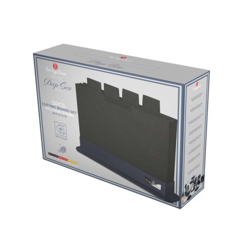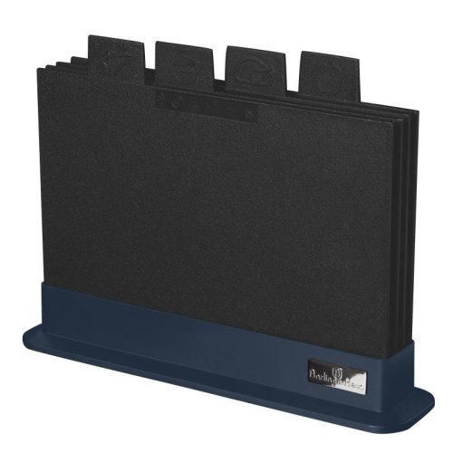 Připravujte své oblíbené suroviny s lehkostí a elegancí díky této praktické sadě pěti krájecích prkének. Vyrobená z odolného plastu v krásné matné modré barvě, sada obsahuje čtyři prkénka označená jazýčky pro snadnou orientaci, abyste mohli bezpečně krájet různé druhy potravin bez obav z křížové kontaminace. Praktický stojan se stříbrným logem udrží vše na svém místě a zajistí pořádek v kuchyni. Lehká a skladná, tato sada je ideální pomocník pro každodenní přípravu jídel.