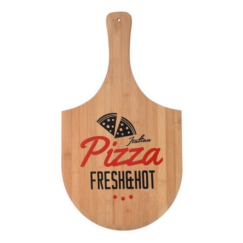 Prkénko na pizzu z kvalitního bambusu (Bambusa Albostriata) je ideální pro přípravu a servírování domácí pizzy. Díky svému praktickému otvoru pro zavěšení se snadno skladujte a přidává rustikální šarm každému stolu. Nápis Italian Pizza.