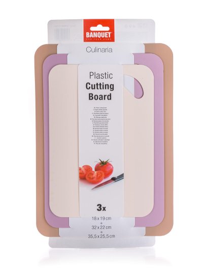 Prkénko protiskluzové, sada 3díl. (27.9, 32, 35.5 cm) PH mix. sada obshauje 3 prkénka: 27,9 cm, 32 cm, 35,5 cm materiál: plast mix barev: béžová, hnědá, fialová Sada protiskluzových prkének CULINARIA …