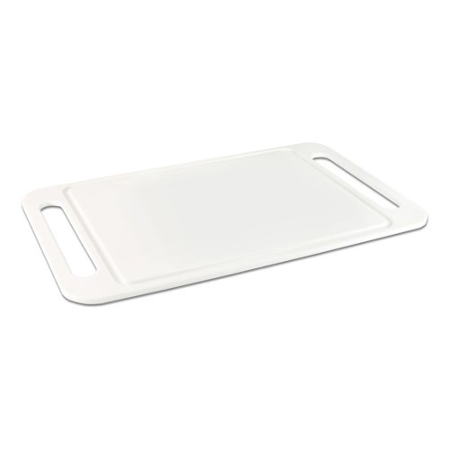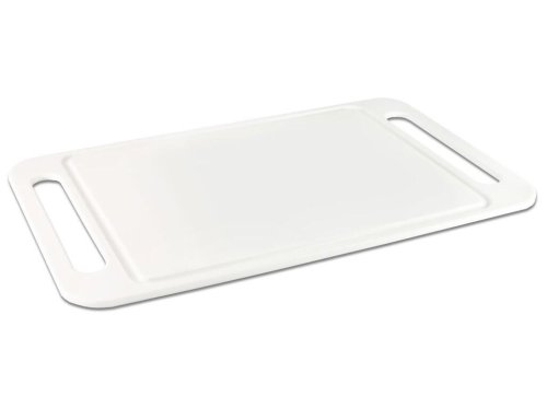 Rozměry 50 x 30 x 0.8 cm. Servírovací plastové prkénko. S 2 oválnými otvorem pro uchopení z obou stran. Drážka po obvodu proti nečistotám a odtoku tekutin. Vhodné do myčky nádobí (do 65°C). Český výrobce. EAN 8590474901405