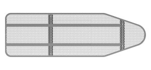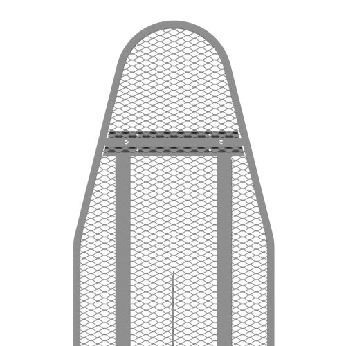 Žehlící prkno AQUA 21 o rozměrech 120 x 38 cm s kovovou odkládací plochou na žehličku. Konstrukce stříbrné barvy s nastavitelnou výškou od 66 do 92 cm.
