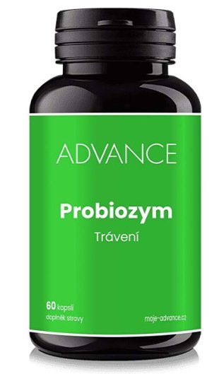 ADVANCE Probiozym obsahuje unikátní kombinaci 6 látek, které přispívají k normální činnosti trávicí soustavy a střev a podporují tak trávení a zažívání. Neobsahuje laktózu, mléčnou bílkovinu ani lepek.