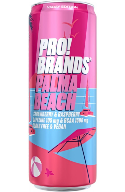 Složení: Passion fruit - ananas (Rio de Janeiro): voda, CO2, kyseliny (kyselina citrónová, kyselina jablečná), L-leucin, L-isoleucin, L-valin, regulátor kyselosti (citráty sodný), přírodní látky určené k aromatizaci, sladidla (sukralóza, acesulfam K), kofein (0,032% ), vitamíny (kyselina pantothenová, vitamín B6, biotin, vitamín B12). Obsahuje kofein (32 mg /100 ml). Jahoda-malina: (Palma Beach): voda, CO2, kyseliny (kyselina citrónová, kyselina jablečná), L-leucin, L-isoleucin, L-valin, regulátor kyselosti (citráty sodný), přírodní látky určené k aromatizaci, sladidla (sukralóza, acesulfam K), kofein (0,032% ), vitamíny (vitamin C, kyselina pantothenová, vitamín B6, biotin, vitamín B12). Obsahuje kofein (32 mg /100 ml). Ananas: voda, CO2, kyselina (kyselina jablečná); L-leucin, L-isoleucin, L-valin, dochucovadla, kofein (0,032 %); vitamíny (vitamin C, kyselina pantotenová, vitamín B6, biotin, vitamín B12); sladidla (sukralóza, acesulfam K). Obsahuje kofein (32 mg /100 ml). Mango: voda, CO2, kyselina (kyselina jablečná), L-leucin, L-isoleucin, L–valin, dochucovadla, kofein (0,032 %), vitamíny (vitamín C, kyselina pantotenová, vitamín B6, biotin, vitamin B12) sladidla (sukralóza, acesulfam K), barviva (riboflaviny). Obsahuje kofein (32 mg /100 ml). Malina: voda, CO2, kyselina (kyselina jablečná); L-leucin, L-isoleucin, L-valin, dochucovadla (koncentrát černé mrkve), kofein (0,032 %), vitamíny (vitamin C, kyselina pantotenová, vitamín B6, biotin, vitamín B12), sladidla (sukralóza, acesulfam K). Obsahuje kofein (32 mg /100 ml). Passion fruit (maracuja): voda, kyseliny (kyselina citronová a kyselina jablečná), CO2, L-leucin, L-isoleucin, L-valin, regulátor kyselosti (citráty sodné), přírodní aroma, kofein (0,032%), sladidla (sukralóza, acesulfam K) vitamíny ( kyselina pantotenová, vitamín B6, biotin, vitamín B12). Obsahuje kofein (32 mg /100 ml). Winter blast (jahoda-malina): voda, CO2, kyseliny (kyselina citrónová, kyselina jablečná), L-leucin, L-isoleucin, L–valin, regulátor kyselosti (citráty sodné), přírodní látky určené k aromatizaci, sladidla (sukralóza, acesulfam K), kofein (0,032 %), vitamíny (kyselina pantotenová, vitamín B6, biotin, vitamin B12). Obsahuje kofein (32 mg /100 ml). Citron (Sicily Limonata): voda, CO2, kyseliny (kyselina citronová, kyselina jablečná), L-leucin, L-isoleucin, L-valin; regulátor kyselosti (citráty sodné), přírodní aroma, kofein (0,032 %), sladidla (sukralóza, acesulfam-K), vitamíny (kyselina pantotenová, vitamín B6, biotin, vitamín B12).. Obsahuje kofein (32 mg /100 ml) a Bcaa (1500 mg/330 ml). Jablko: voda, CO2, kyseliny (kyselina citronová, kyselina jablečná), L-leucin, L-isoleucin, L-valin; regulátor kyselosti (citráty sodné), přírodní aroma, kofein (0,032 %), sladidla (sukralóza, acesulfam-K), vitamíny (kyselina pantotenová, vitamín B6, biotin, vitamín B12).. Obsahuje kofein (32 mg /100 ml) a Bcaa (1500 mg/330 ml). Mykonos sunset: voda, L-leucin, L-isoleucin, L-valin, aroma, oxid uhličitý, kyselina (kyselina citronová), kofein (0,032%), sladidla (sukralóza, acesulfam K), vitamíny (kyselina pantothenová, vitamín B6, biotin, vitamín B12), barviva (karoteny). Obsahuje kofein (32 mg /100 ml) a Bcaa (1500 mg/330 ml). Crispy pear (hruška): voda, oxid uhličitý, L-leucin, L-isoleucin, L-valin, kyselina (kyselina citronová), aroma, kofein (0,032 %), vitamíny (kyselina pantotenová, vitamín B6, biotin, vitamín B12), sladidla (sukralóza, acesulfam K). Obsahuje kofein (32 mg/100 ml). Ledový čaj-broskev: voda, oxid uhličitý, L-leucin, L-isoleucin, L-valin, extrakt z čaje (0,12 %), kyselina (kyselina citronová), regulátor kyselosti (citronan sodný), aroma, kofein (0,032 %), sladidla (sukralóza, acesulfam K), vitamíny (kyselina pantotenová, vitamín B6, biotin, vitamín B12), Obsahuje kofein (32 mg/100 ml) a Bcaa (1500 mg/330 ml). Upozornění pro fenylketonuriky: obsahuje fenylalanin (některé z variant). Upozornění: Obsahuje kofein, není vhodné pro děti a těhotné ženy. Denní dávka (1, maximálně 2 plechovky) obsahuje (1 plechovka) 105-180 mg kofeinu, (2 plechovky) 210-360 mg kofeinu. Produkt není vhodný pro osoby trpící přecitlivělostí na kofein. Upozornění pro fenylketonuriky: obsahuje fenylalanin (některé z variant). Po otevření zkonzumujte do 24 hodin. Skladujte na chladném místě mimo dosah přímého slunečního záření.
