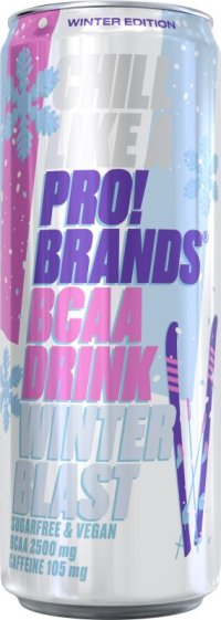 ! Obsahuje kofein, není vhodné pro děti a těhotné ženy. Denní dávka (1, maximálně 2 plechovky) obsahuje (1 plechovka) 105-180 mg kofeinu, (2 plechovky) 210-360 mg kofeinu. Produkt není vhodný pro osoby trpící přecitlivělostí na kofein. Každá plechovka PRO!BRANS BCAA DRINK je naplněna až 1500 mg BCAA, 105-180 mg kofeinu a má svěží a delikátní chuť. K dispozici je celkem 20 různých aminokyselin, které mají různé vlastnosti a charakteristiky. Některé jsou navrženy tak, aby podporovaly budování svalů a regeneraci, zatímco jiné zvyšují výkon a další zase odsouvají svalovou únavu. Aminokyseliny jsou dobré, ať už chodíte na túry, trénujete v tělocvičně nebo si potrpíte na vytrvalostní sporty. Obsahuje vyvážené množství vitamínů: Vitamin C - přispívá k přísunu energie a zbaví vás únavy Vitamín B5 - přispívá k metabolismu neurotransmiterů a vitaminu D Vitamín B6 - pomáhá vytvářet "dobrou" energii ve svalech Biotin - vitamín krásy! Biotin je mimo jiné dobrý pro vaši pokožku, vlasy a nehty Vitamín B12 - aktivuje vaši přirozenou energii v těle