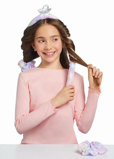Nádherné kadeře bez tepla nebo poškození vlasů! Snadno nastavte bezteplotní kulmu pomocí přiložených scrunchies, odpočívejte u televize, dělejte domácí úkoly nebo si odpočiňte... poté kulmu sejměte a odhalte plážové vlny bez námahy! Udělejte si styl s barevnými křupkami a/nebo motýlí sponou a použijte super trendy nadýchanou čelenku, aby vám vlasy nepřekážely při mytí do postele.