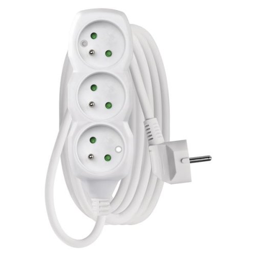 • Bílý prodlužovací přívod se 3 zásuvkami s průřezem vodiče 1 mm2