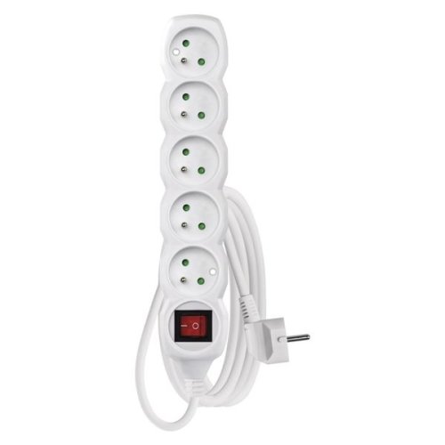 • Bílý prodlužovací přívod, 5 zásuvka s vypínačem, délkou 3 m a průřezem vodiče 1 mm2