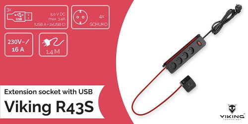 1 ks - Prodlužovací zásuvka s USB Viking R43S
