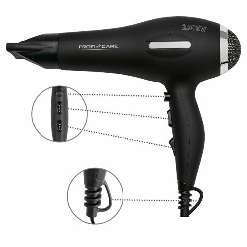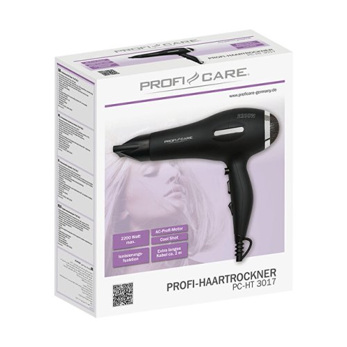 Profesionální vysoušec vlasů se silným AC motorem je vhodný i pro potřeby salonu s až o 70 % delší životností. Obzvláště silný proud vzduchu pro rychlé a účinné sušení. Výhodou je ionizační funkce pro vytvoření antistatickému efektu. Vlasy nejsou vysušovány, ale jsou hladké a lesklé. Fén lze provozovat ve 3 teplotách a 2 rychlostech + Cool Shot. Extra přesná tvarovací tryska pro přesný styling otočná o 360° a odnímatelná. Disponuje odjímatelným filtrem na nasávání vzduchu. Extra dlouhý kabel je až (cca 2 m). Kryt je vyroben ze Soft Touch materiálu a je tak příjemný na dotyk. Na rukojeti je závěsné oko pro případné zavěšení fénu. O bezpečnost se stará ochrana proti přehřání.
