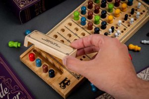 Jeden z hráčů vybere 4 barevné hrací figurky a vloží je do zakryté části hrací desky. Protihráč má za úkol zjistit různými kombinacemi barev, které to jsou. Má určitý počet tahů a nápovědu od spoluhráče pomocí bílých a černých figurek. Podporuje logické myšlení a soustředění. Vyrobeno ze dřeva.