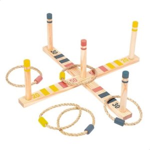 Balení obsahuje: Dřevěný kříž s 5 kolíky, 5 házecích kroužků, návod.