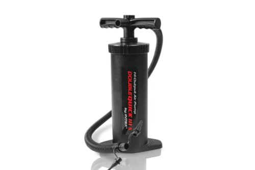 Ruční pumpa DOUBLE QUICK III S Intex Je ruční pumpa s hadicí pro rychlé nafukování a vyfukování bazénů, matrací, lehátek, míčů či dětských hraček. Dvojí působení dovolí pumpovat směrem nahoru i směrem dolu. Pro nafouknutí a vyfouknutí stačí změnit směr proudícího vzduchu. Pumpa disponuje vysokým průtokem vzduchu pro rychlejší nafouknutí. Velikost 37 cm. Vhodné od 14 let.