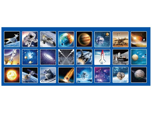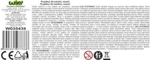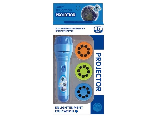 Projektor 24 snímků - Vesmír. Obsahuje projektor, 3 kotouče se snímky (celkem 24 snímků). Délka projektoru 12,5 cm. 3xAG13 baterie do projektoru součástí. Přepínač ON/OFF na projektoru. Zaostřovací prstenec na projektoru.
