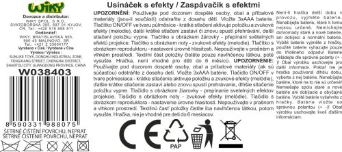 Projektor zebra s hudbou. Velikost 35cm. Baterie 3xAAA nejsou součástí. Tlačítko on/off, ovládání hlasitosti, světelná projekce noční oblohy, melodie