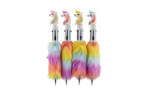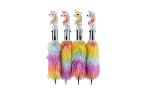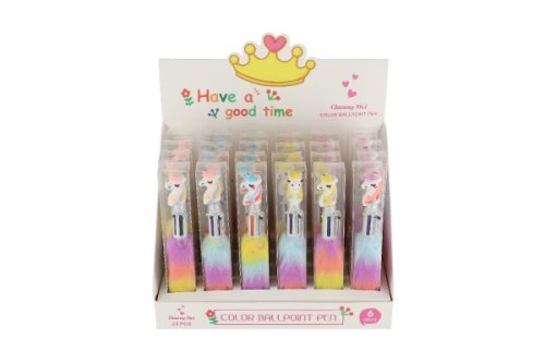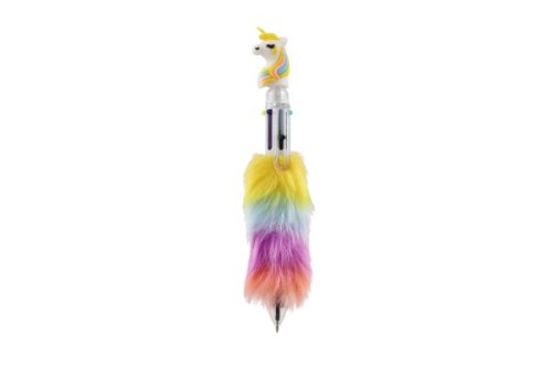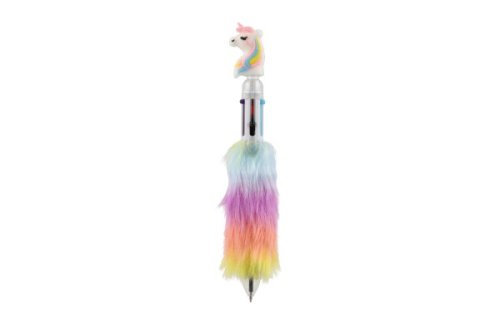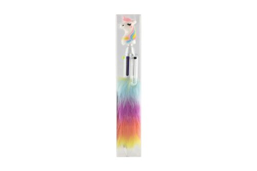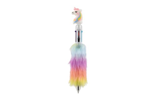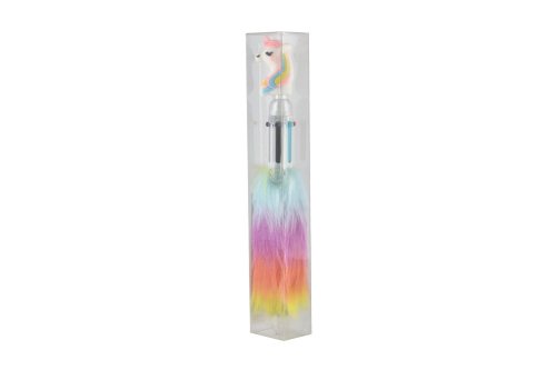 Nápaditá propiska s motivem jednorožce a třásněmi prostě baví! Propiska zkrátka nesmí chybět v žádném penálu ani v žádném dětském šuplíku. Uvnitř se ukrývá 6 barevných tuh, které lze libovolně měnit. Přepínání mezi barvami je velmi snadné, stačí stlačit novou barvu. S touto propiskou si děti užijí spoustu zábavy, kreslení a psaní je bude bavit. Rozměr pera: 16 cm