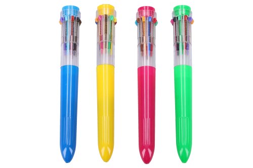 Vícebarevná propiska obsahuje 10 barev. Barevné varianty propisky - žlutá, modrá, růžová, zelená