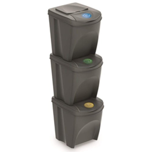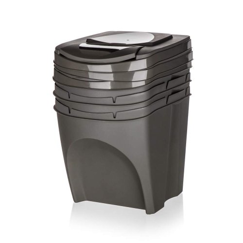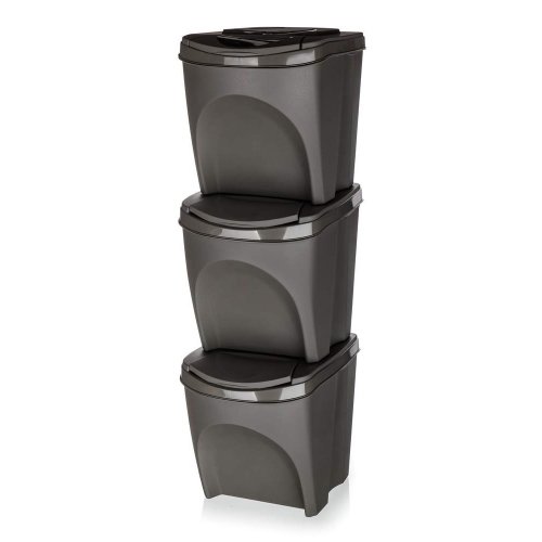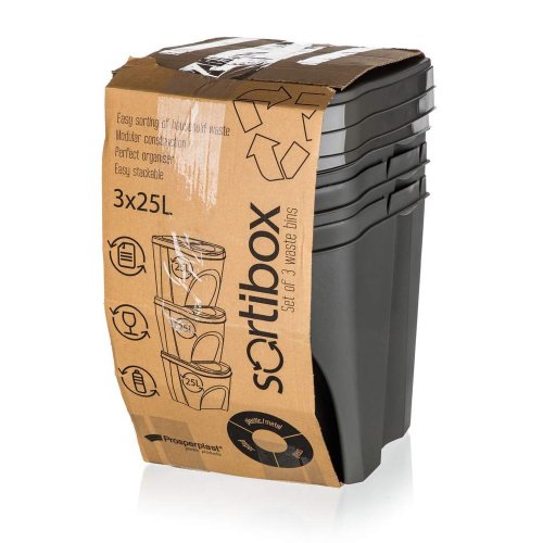 Sada odpadkových košů na tříděný odpad - sklo, plast a papír jsou vhodným pomocníkem v domácnosti. Koše je možné stohovat a tím ušetřit prostor. Objem koše je 25 l.
