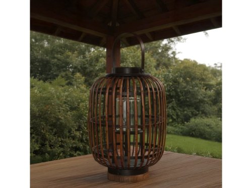 Tato proutěná lampa s uchem vnese do vašeho domova přírodní a rustikální kouzlo. Rozměry 325 × 415 mm ji činí výrazným dekorativním prvkem vhodným na stůl, parapet nebo pro zavěšení. Jemné světlo svíčky se proplétá proutěnou strukturou a vytváří hřejivou atmosféru. Praktické ucho umožňuje snadné přenášení či zavěšení, zatímco přírodní materiál dodává interiéru stylový vzhled. Ideální pro romantické večery i útulné posezení s přáteli.