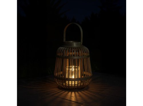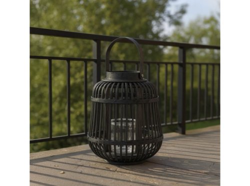 Tato proutěná lampa s uchem a vnitřní skleněnou vložkou na svíčku je dokonalým doplňkem na zahradu, terasu i do interiéru. V přírodní zelené barvě a velikosti 19 × 24 cm přináší útulný rustikální vzhled. Vložte dovnitř svíčku a nechte jemné světlo prozářit váš večer. Díky madlu se snadno přenáší i zavěšuje.