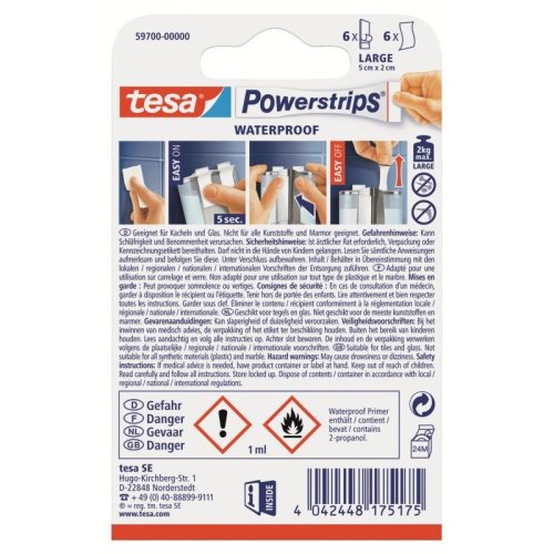 voděodolné tesa Powerstrips® samolepicí proužky velké samolepicí instalační proužky, které jsou určeny k odstranitelnému přichycení na zeď pro předměty o váze do 2 kg využití v koupelně nebo kuchyni …