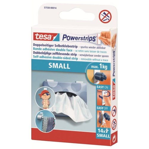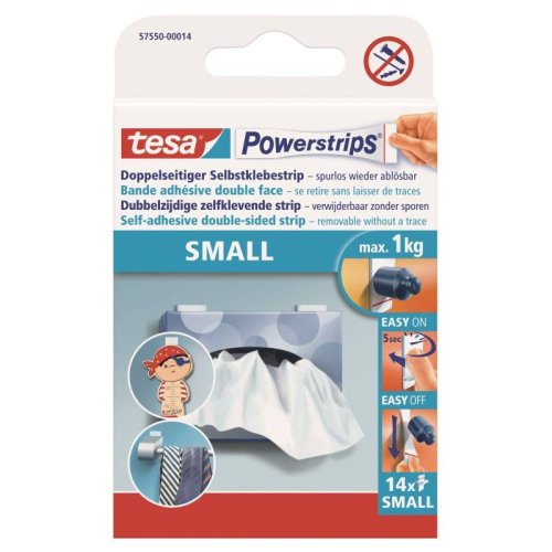 malé oboustranně samolepicí proužky Tesa Powerstrips® pěnové proužky vhodné pro upevnění menších a plochých předmětů do hmotnosti 1 kg lepí se na rovný a dostatečně pevný povrch (nevhodné pro použití …