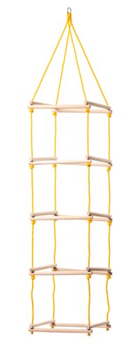 Čtyřhranný provazový žebřík je vyroben z masivních dřevěných tyčí a pevných lan. Je vhodný do exteriéru i interiéru. K zavěšení na bezpečnostní (nejlépe točivý) hák (není součástí balení). Nosnost: 60 kg. Rozměr: 40 x 40 x 195 cm. Rozměr balení: 21 x 21 x 45 cm. Věk: 3+