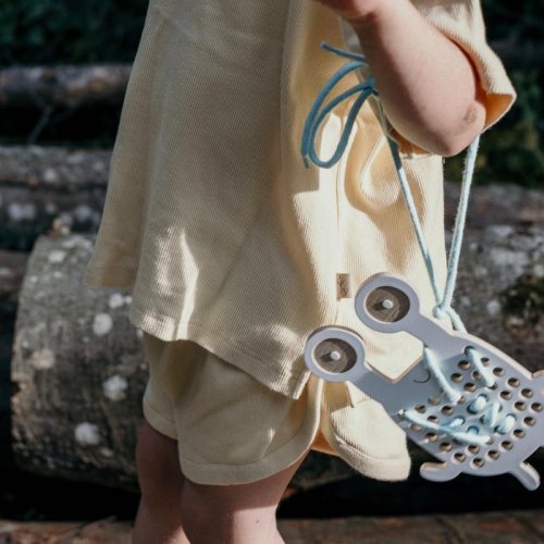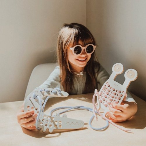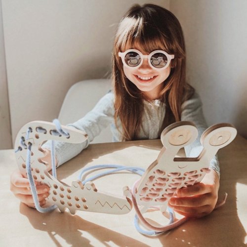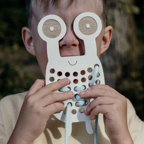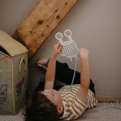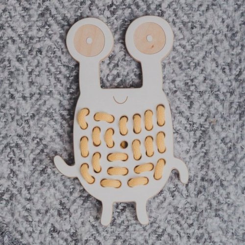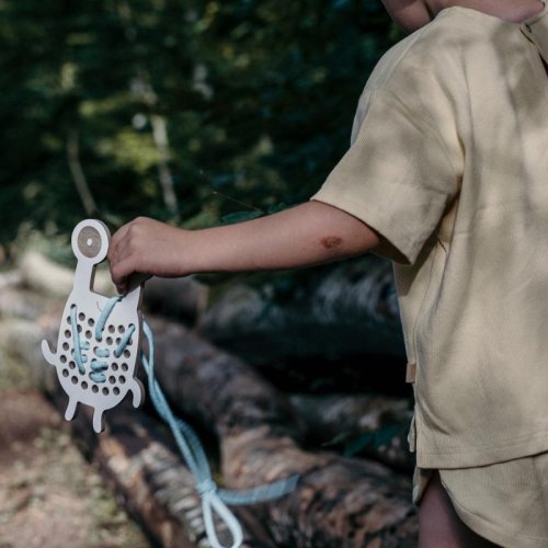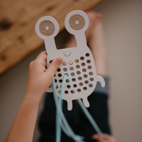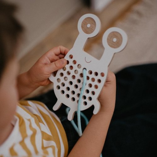 Dřevěná provlékací hračka rozvíjející kreativitu a představivost.