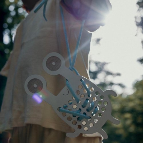 • dřevěná provlékací hračka pro rozvoj kreativity, fantazie a jemné motoriky