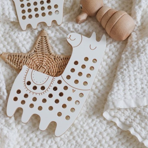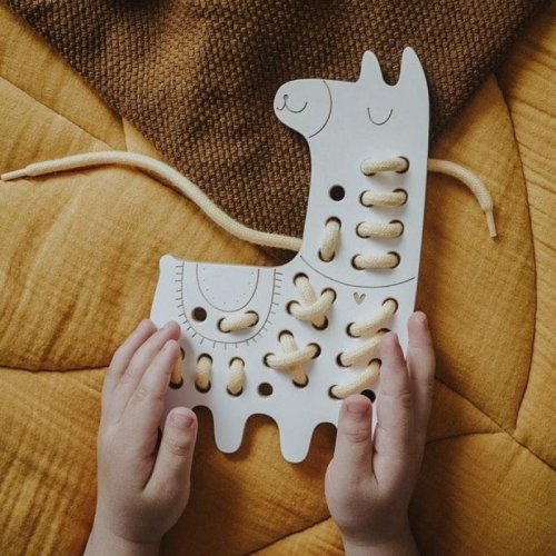 Dřevěná provlékací hračka rozvíjející kreativitu a představivost.