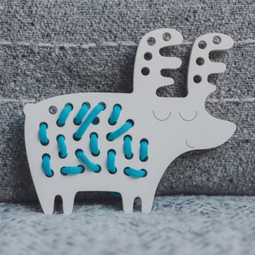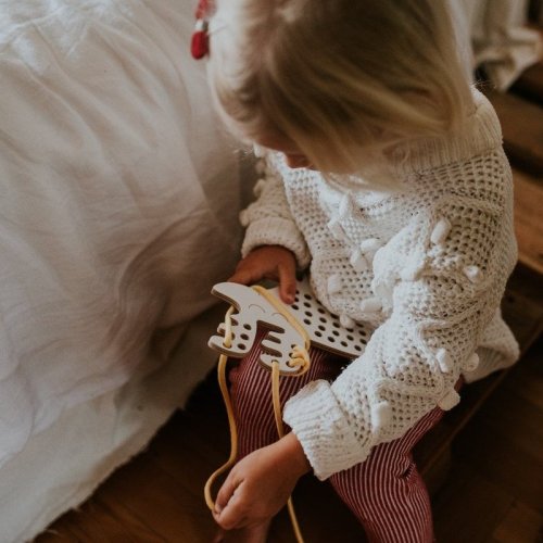Dřevěná provlékací hračka rozvíjející kreativitu a představivost.