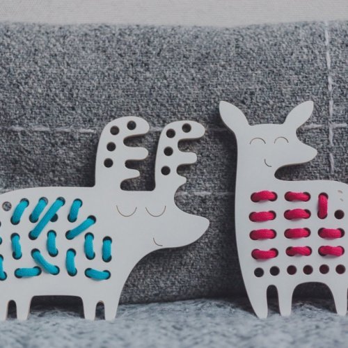 • dřevěná provlékací hračka pro rozvoj kreativity, fantazie a jemné motoriky