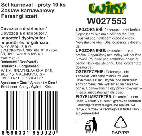 Čarodějnické prsty s červenými drápy nesmí chybět žádné čarodějnici jako doplněk ke karnevalovému převleku. V balení je 10 ks. Není hračka