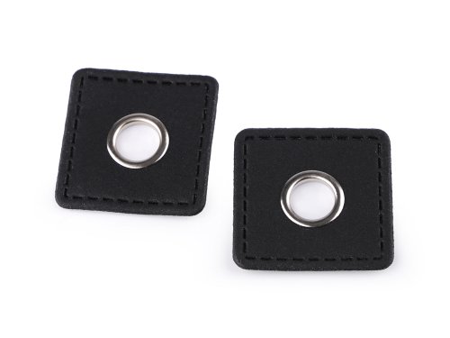 Průchodka s koženkovým čtverečkem je vhodná k našití na konce tunýlků u mikin a bund.