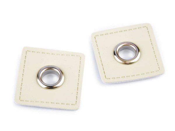 Průchodka s koženkovým čtverečkem k našití, průvlek 8 mm - krémová světlá nikl (1000 ks)