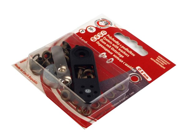 Kovová průchodka slouží k pohodlnému provlečení šňůry nebo gumy textilem. Najdete ji např. u stahování batohů. Využijete ji na materiál s tloušťkou 1 - 3 mm. Je složená ze dvou částí. Nereziví. V balení najdete 20 ks. Použití: Průchodku využijete především v oblasti textilní výroby, například při šití bund, mikin apod. Nýtování se provádí ručně mini lisem, který je součástí balení. Na vysekávání děr do materiálu vám doporučujeme sadu výsečníků.
