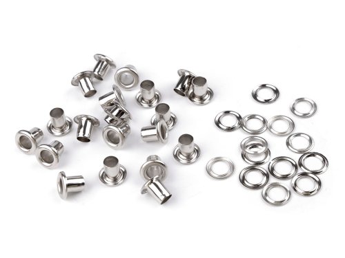 Kovové průchodky zpevní dírky v materiálu a umožní provlečení šňůry nebo gumy. Využijete je při výrobě a zdobení tašek, kabelek nebo batohů. Skládají se ze dvou částí. Při styku s vodou můžou rezivět. Nýtování se provádí pistonem a lisem, který je pod kódem 070241 nebo 790770. Na vysekávání děr do materiálu vám doporučujeme sadu výsečníků.