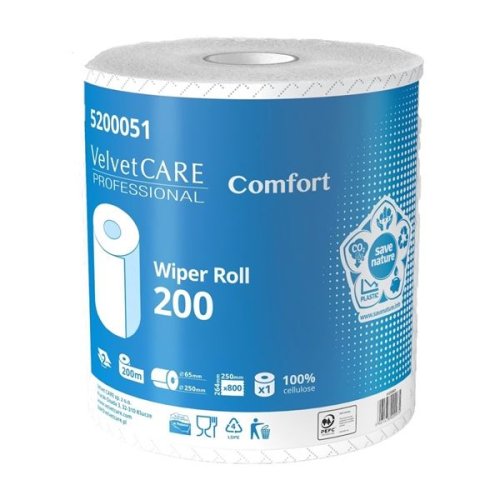 Průmyslové utěrky Velvet Professional - 2 vrstvé, 200 m, 3 role 100% celulóza 2vrstvé Návin 200 m Rozměr útržku 26,4x 25 cm Každá role je samostatně balená Počet útržků 800 ks Průměr dutinky 6,5 cm Balení …
