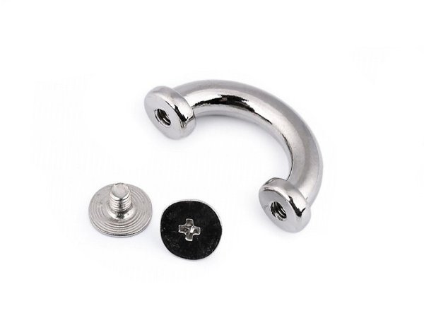 Kovový průvlek ozdobí kabelky, tašky, batohy či opasky (z koženky, eko kůže, kůže a z hrubších materiálů [- tloušťka cca 1-2 mm]). Připevňuje se pomocí dvou šroubků. Průvlek je z nemagnetického kovu, šroubky jsou magnetické. Rozměry viz foto.