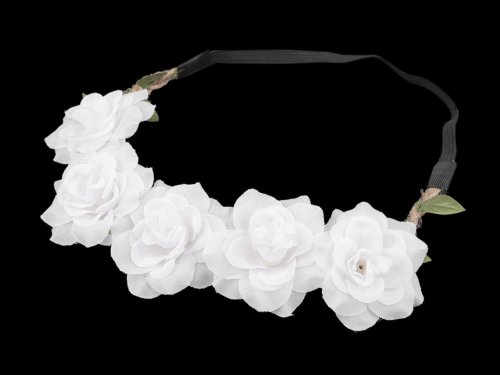 Pružná čelenka do vlasů s květy - bílá