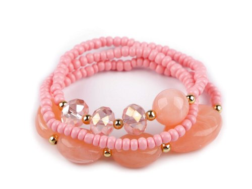 Sada 3 náramků je velice elegantní. Můžete je nosit všechny najednou nebo je použít samostatně. Design, který kombinuje drobné a větší korálky, vytváří harmonický vzhled, který se hodí k jakémukoliv outfitu. Náramky jsou pružné, sestavené z velkých broušených korálků, plastových kamenů a rokajlu. Díky pružence se dobře navlékají na ruku. Šířka celé sady je cca 3,5 cm.