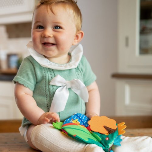 Textilní pestrobarevná knížka s příběhem.