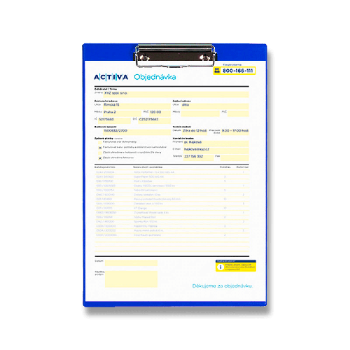 PVC psací podložka s klipem. Extra silná a pevná lepenka 2,5 mm. Rozměr 220 x 323 x 2,5 mm. Na dokumenty A4.