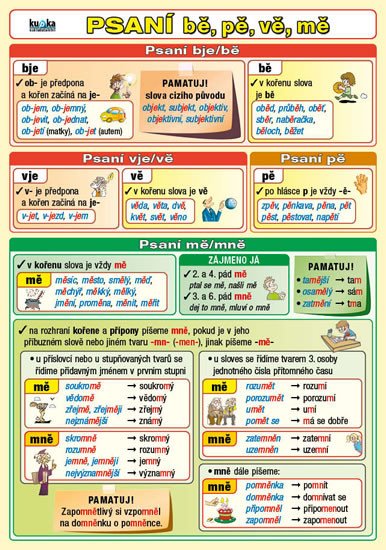 Přehledně zpracované a bohatě ilustrované téma český jazyk – pravopis bě, pě, vě, mě a psaní předpon s-, z-, vz-.